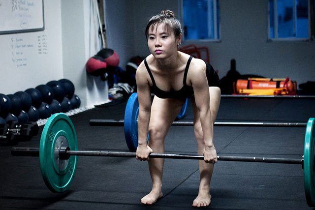 With a standard deadlift, start with the barbell on the ground right in front of your feet. Stand straight with your feet hip-width apart. Bend down, tighten your core to avoid rounding your back and causing injury. Grab the bar, lift your chest, and stand up with the weight, locking your knees and hips. Push your hips back and lower to return to the ground and repeat the workout. This exercise mainly targets your lower back and hamstrings, but they engage muscles in the upper body and core as well.